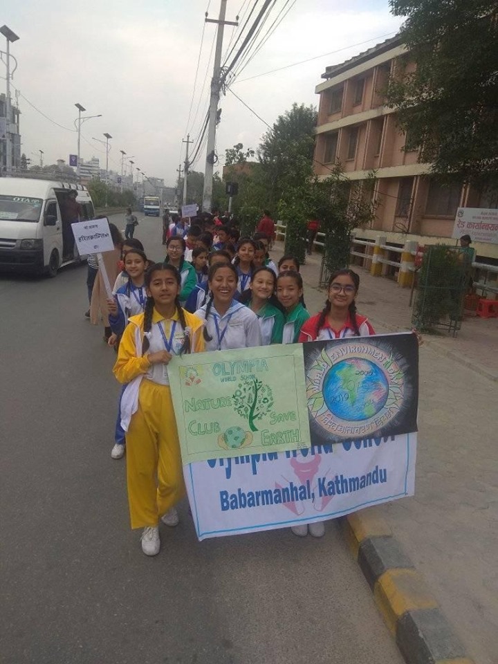 काठमाण्डौ – काठमाण्डौमा औँलामा गनिने स्कुलमध्येको एक हो –ओलम्पिया वल्र्ड स्कुल । हरेक वर्षझैँ यसपाली पनि उक्त स्कुलले भव्यताका साथ विश्व वातावरण दिवस मनाएको छ । दिवसका अवसरमा स्कुलले सरसफाइ ¥याली , बृक्षारोपण तथा सचेतनामूलक नाटक प्रदर्शन गरेको थियो । नेचर क्लबको नेतृत्वमा भएको उक्त कार्यक्रम लगभग ४–५ घण्टामा सम्पन्न भएको थियो । विद्यार्थीहरुलाई विशेष जोड दिएर आयोजना गरिएको उक्त कार्यक्रममा विद्यालयका प्र.अ. ,शिक्षक तथा अन्य व्यक्तिहरुसमेत सहभागी भएका थिए । उक्त कार्यक्रमको संयोजकत्व नेचर क्लबका शिक्षक द्वय शोभन भण्डारी तथा नसला प्रजापतिले गरेका थिए । कार्यक्रमा बोल्दै शिक्षक शोभनले यस्ता कार्यक्रमले विद्याथीलाई सक्रिय बनाउनुका साथै समाजमा सही सन्देशसमेत फैलाउने कुरामा विश्वस्त रहेको बताए ।