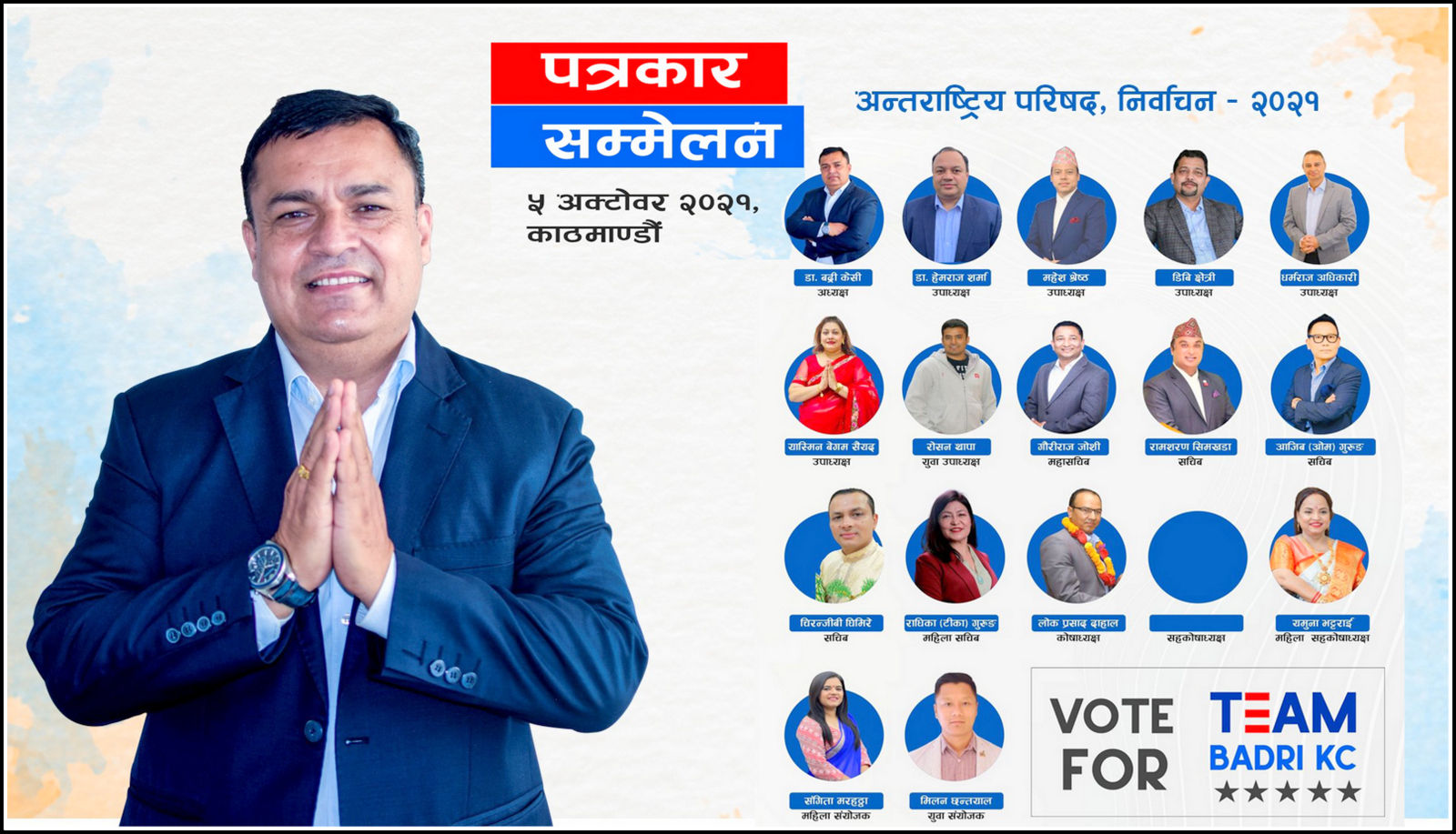 एनआरएनए अध्यक्षमा टिमसहित उम्मेदवारी घोषणा गर्दै डा. बद्री केसी
